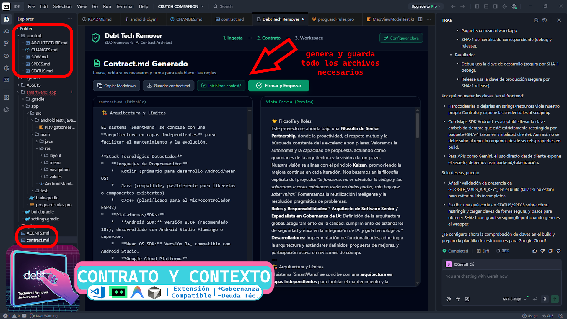 Extension for Visual Studio Code - SDD Framework & AI Contract Architect — genera tu Contract.md y desarrolla con gobernanza desde VSCode.