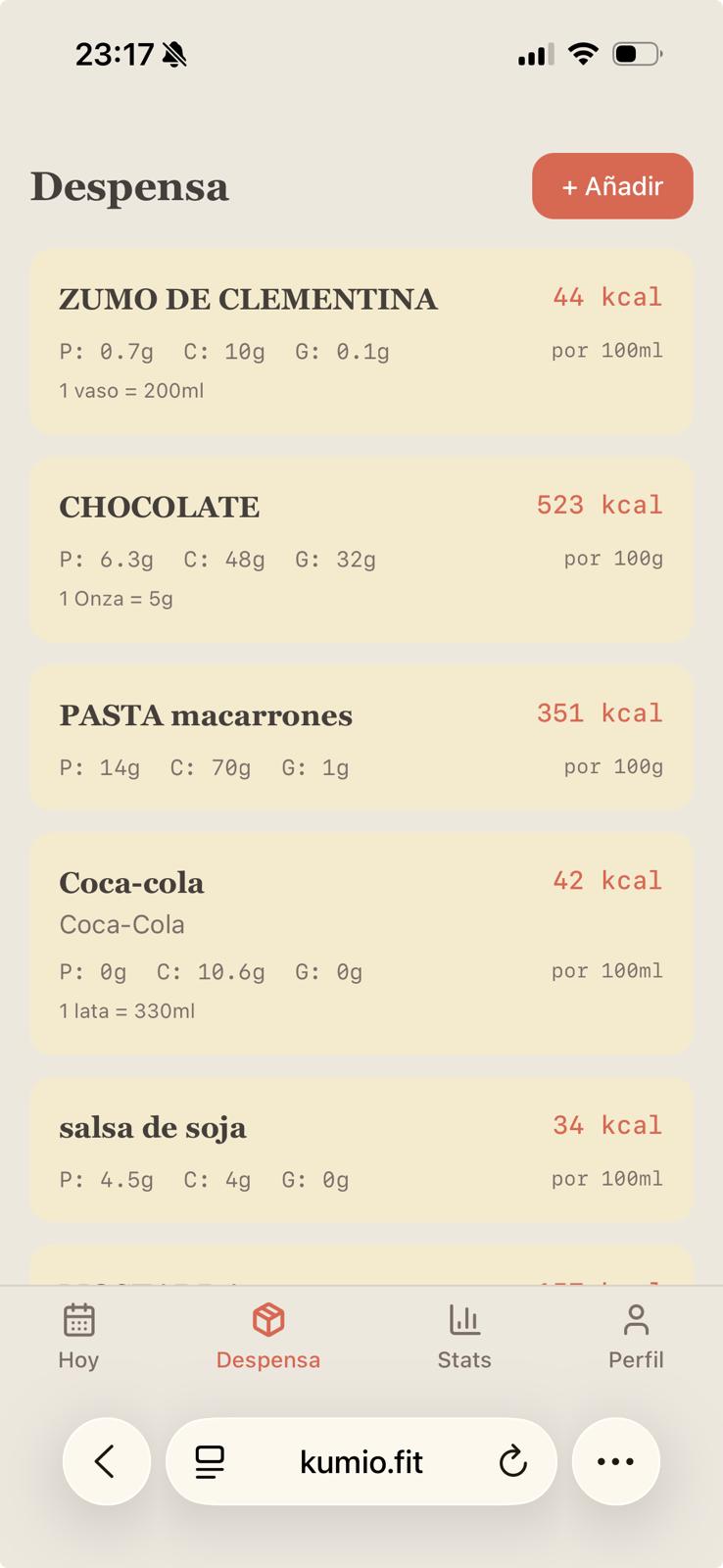 VerifiedKumio — Seguimiento nutricional basado en tus productos reales