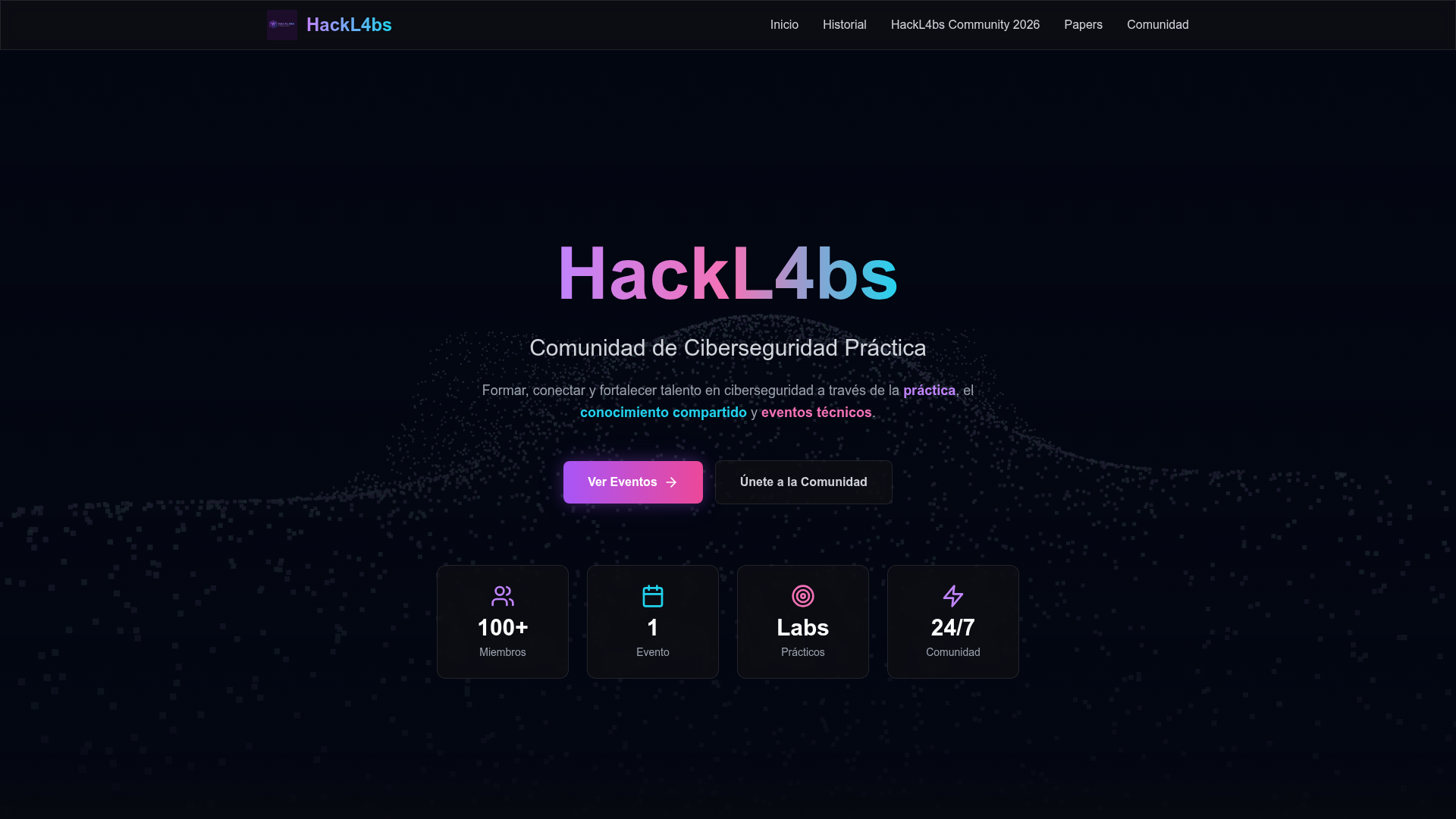 Formar, conectar y fortalecer talento en ciberseguridad a través de la práctica, el conocimiento compartido y eventos técnicos. Únete a nuestra comunidad.